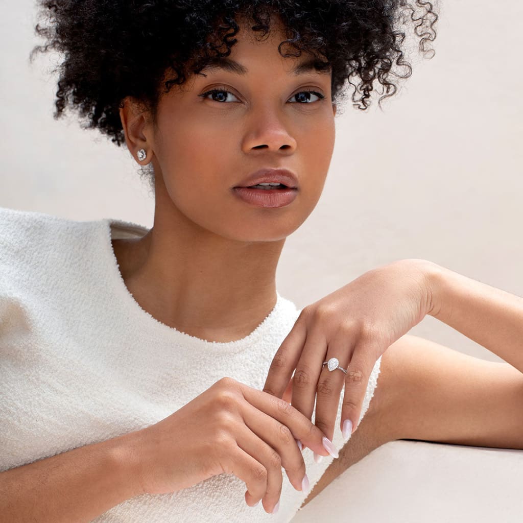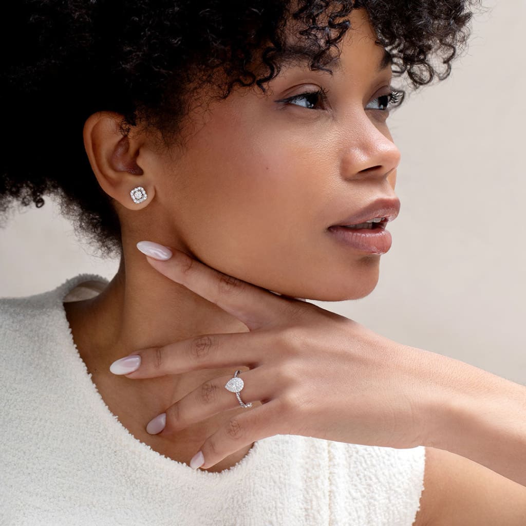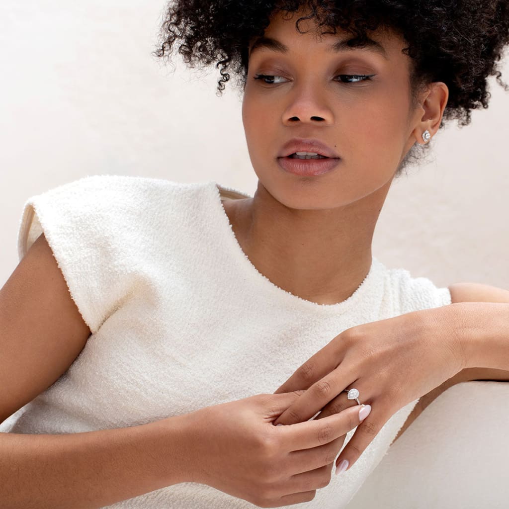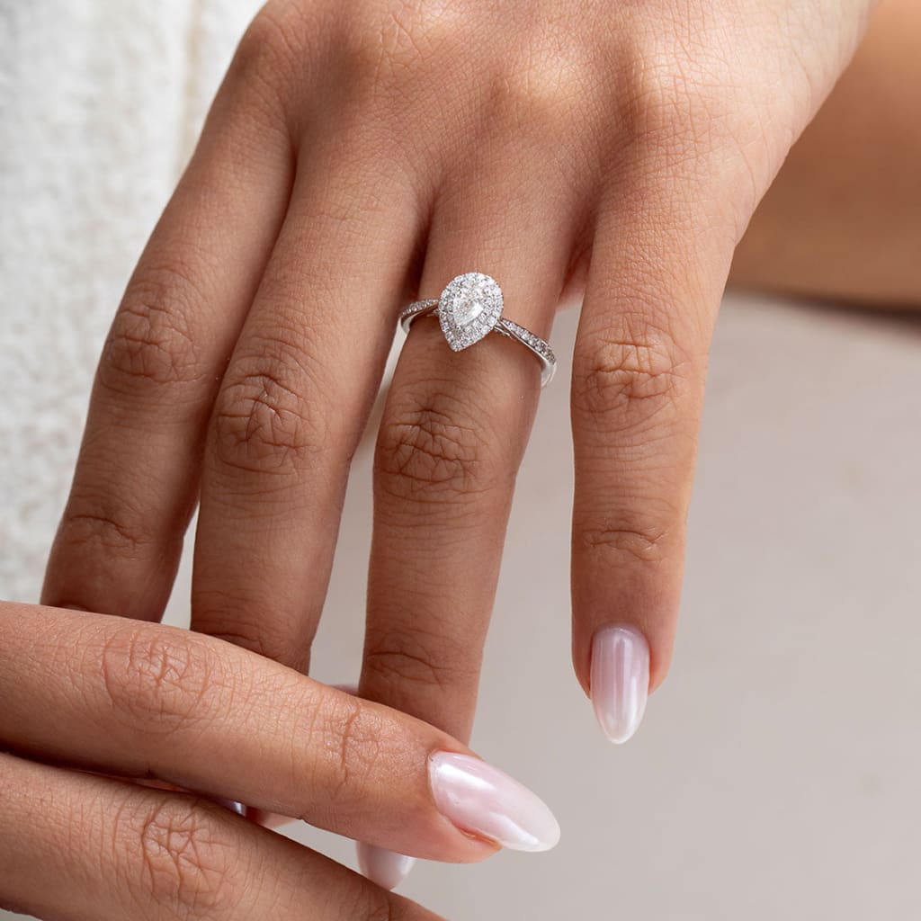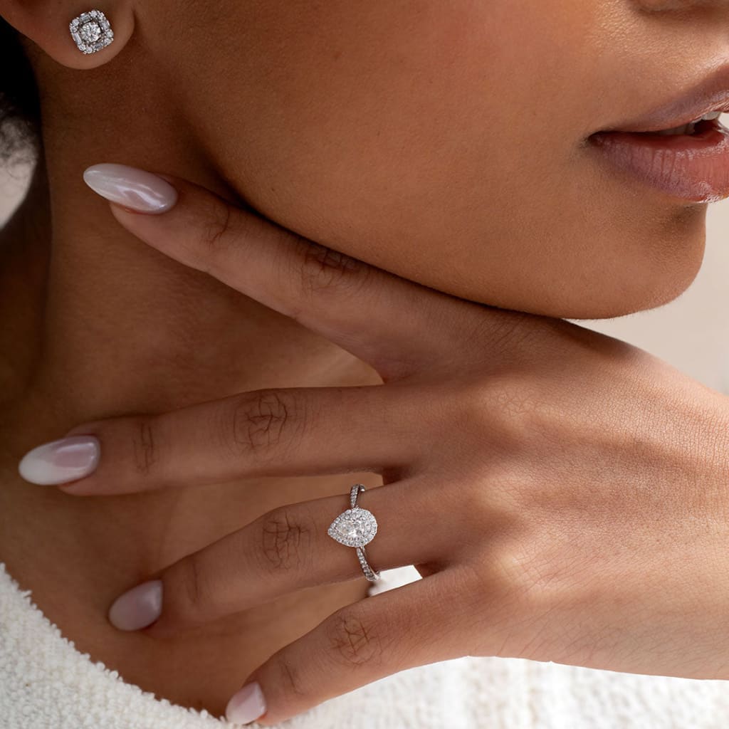 CAITRIONA 0.75ct Pear Halo Diamond Engagement Ring in 925 Silver