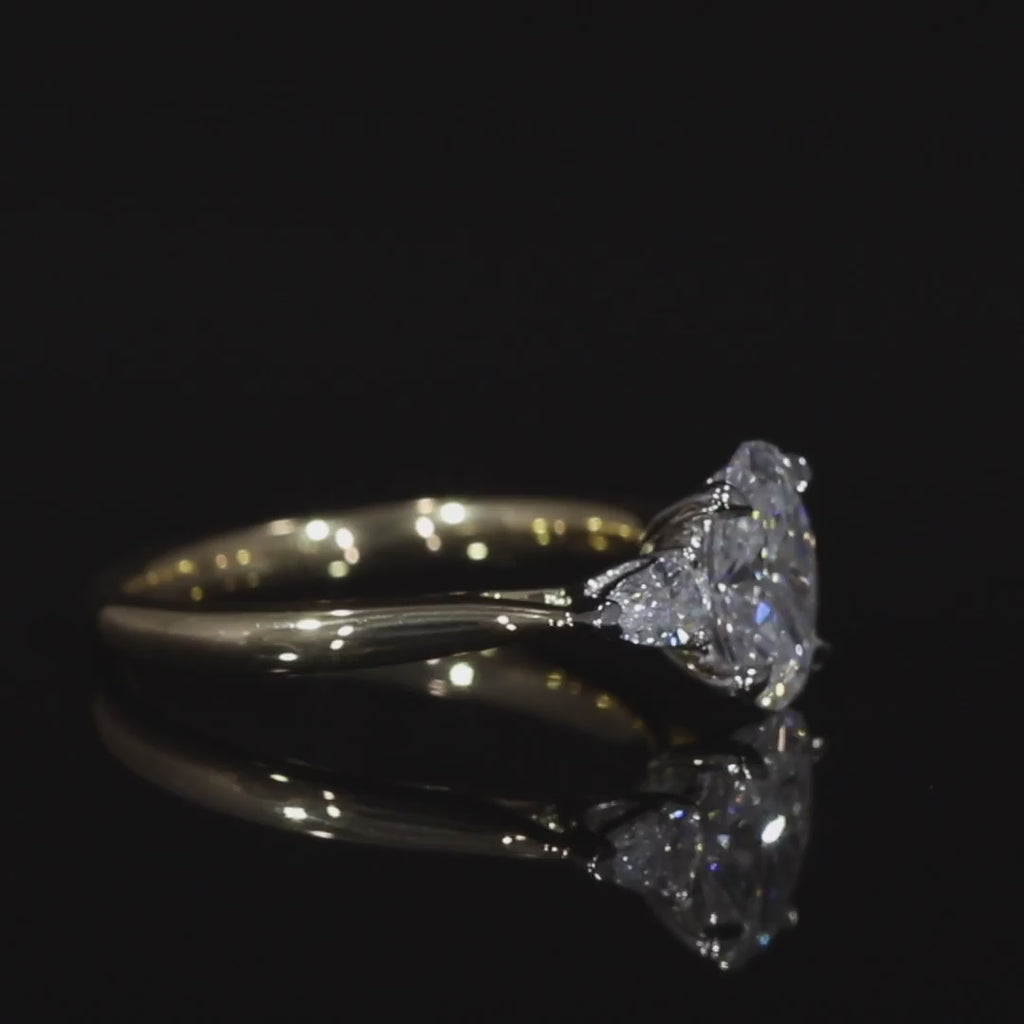 A 1.20ct lab-diamond trio delivers symmetry and contrast in this softly structured composition. The oval centre diamond is flanked by two pear-shaped lab-diamonds, creating a gentle taper that draws the eye inward while offering a flattering spread across the