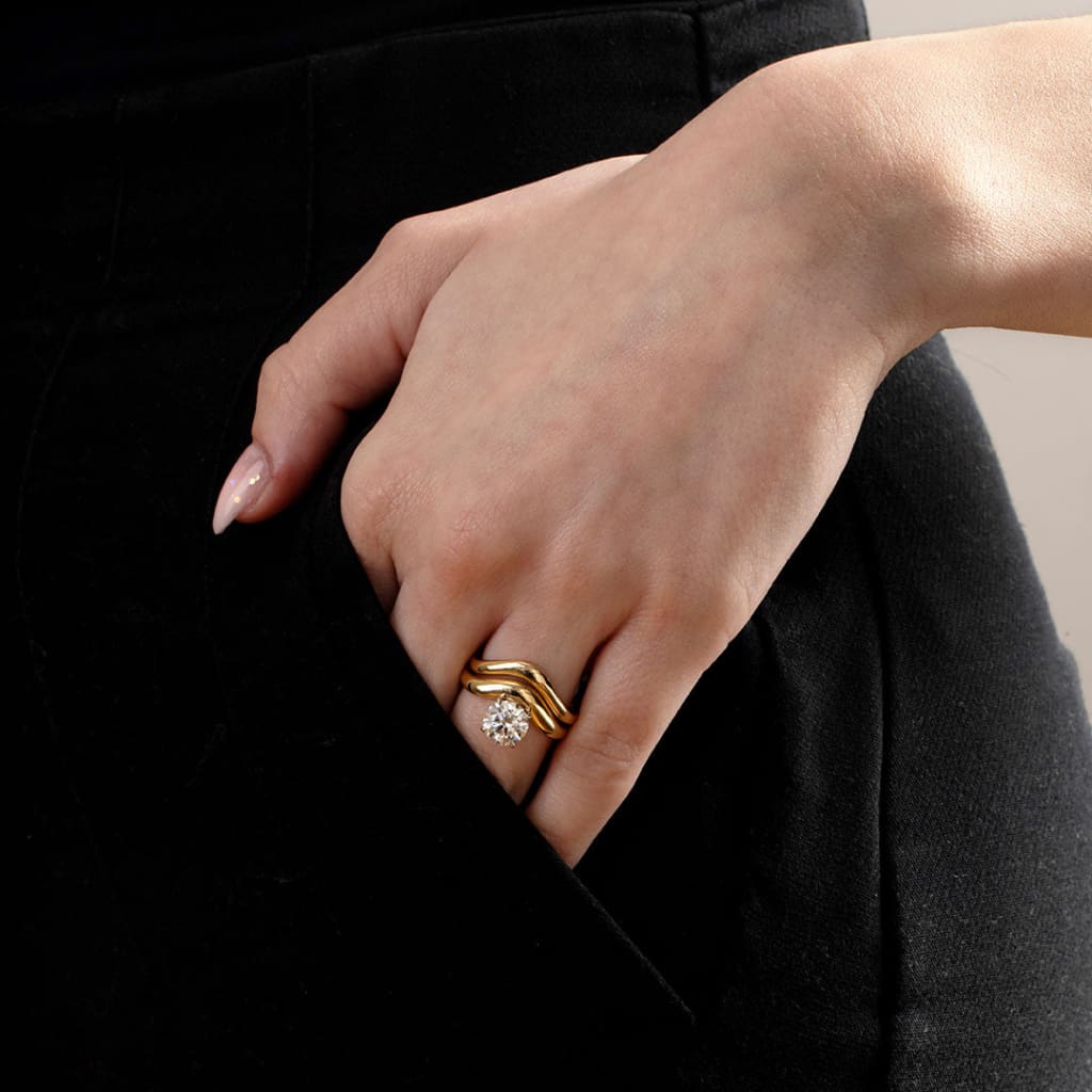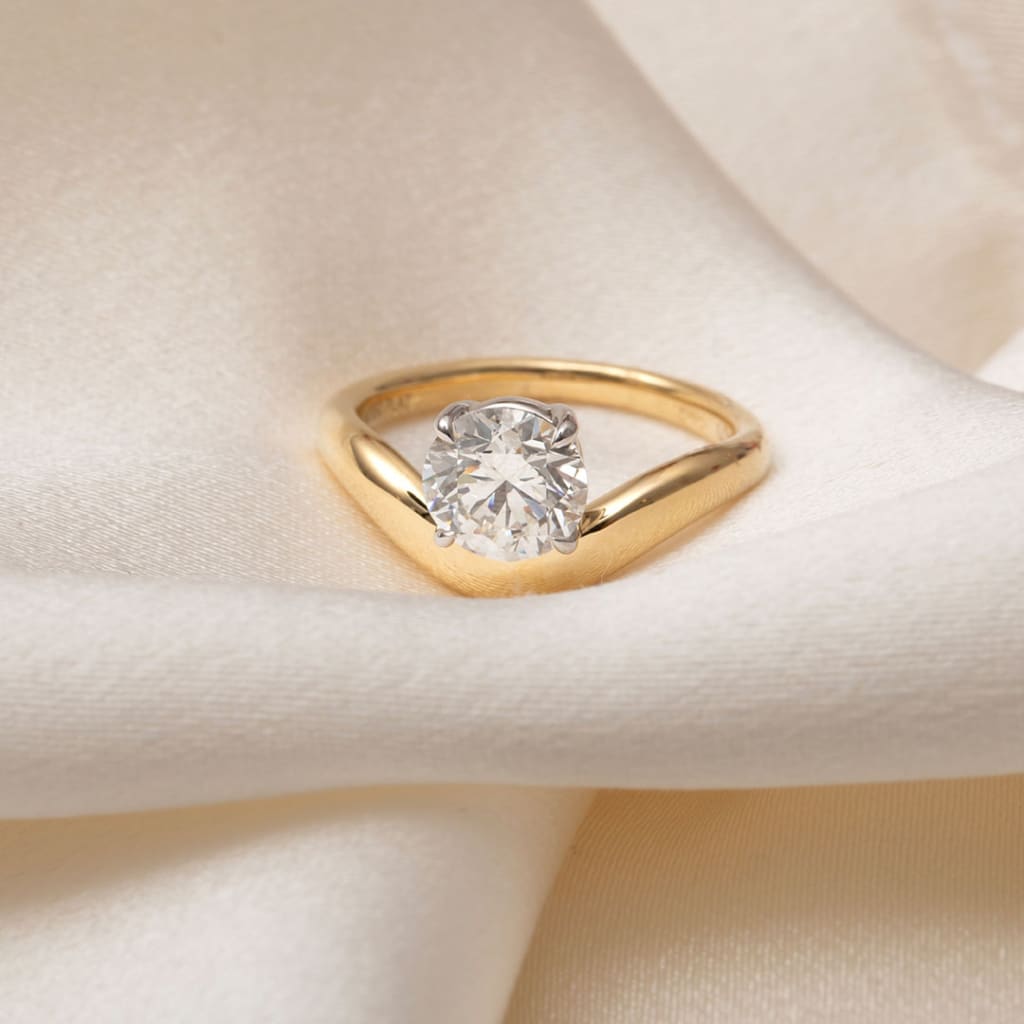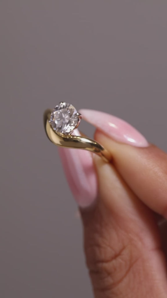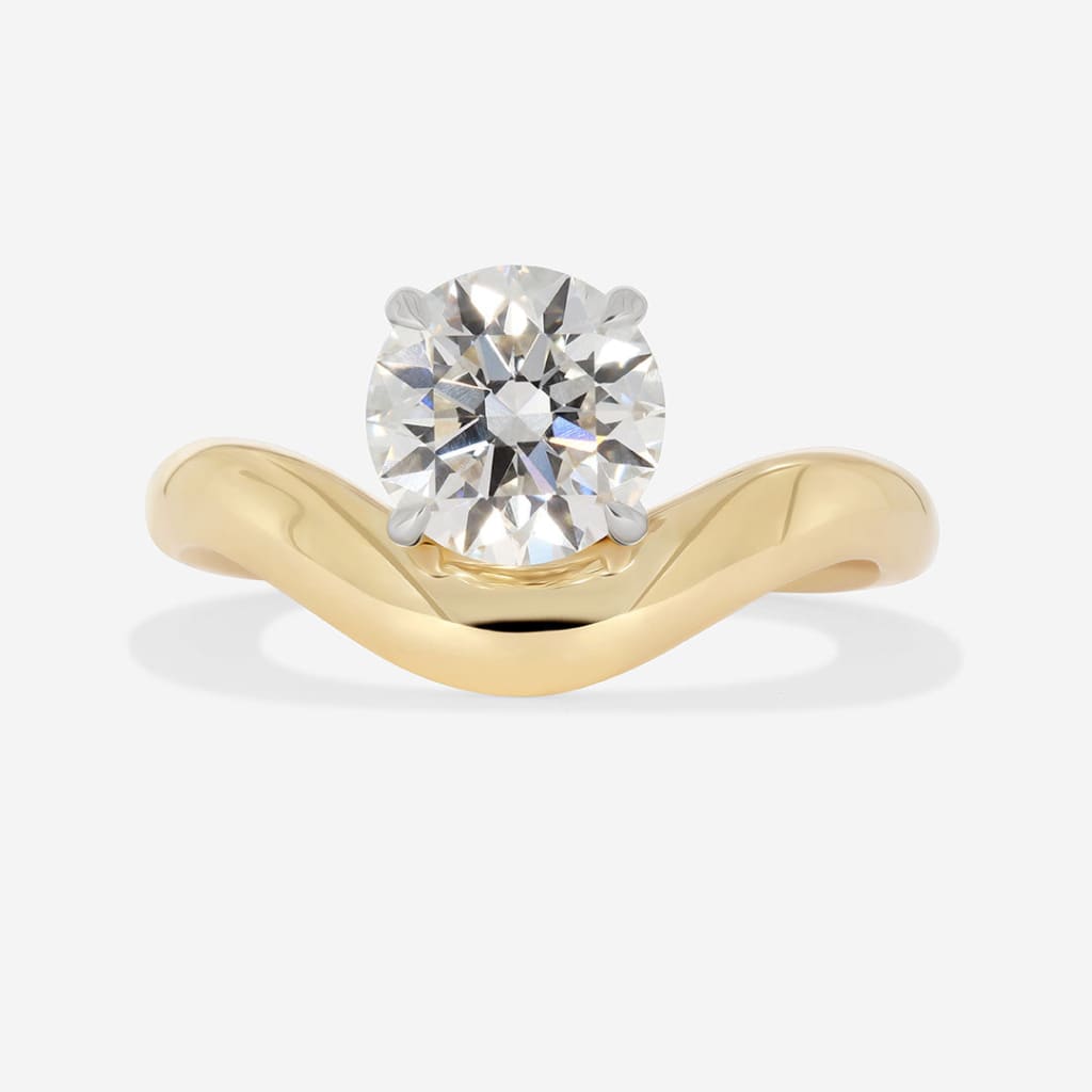 A 1.50ct round brilliant-cut lab-diamond sits at the heart of this sculptural solitaire. The round cut delivers balanced brilliance through its symmetrical facet pattern, offering crisp flashes of light and a bright, lively presence.