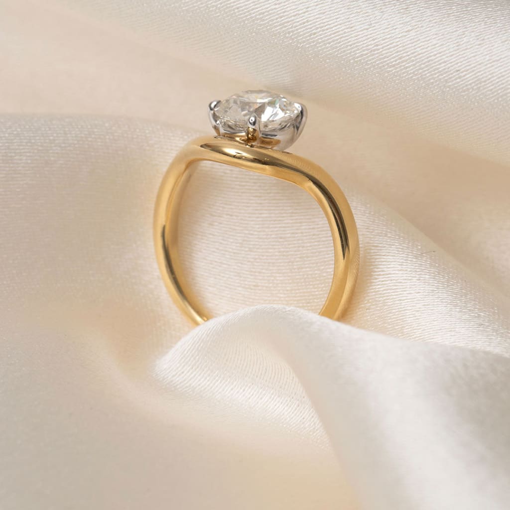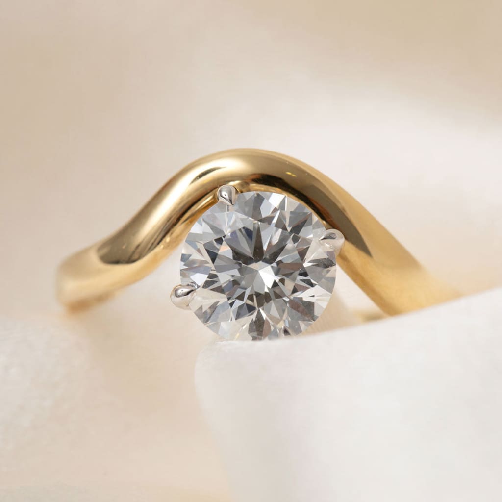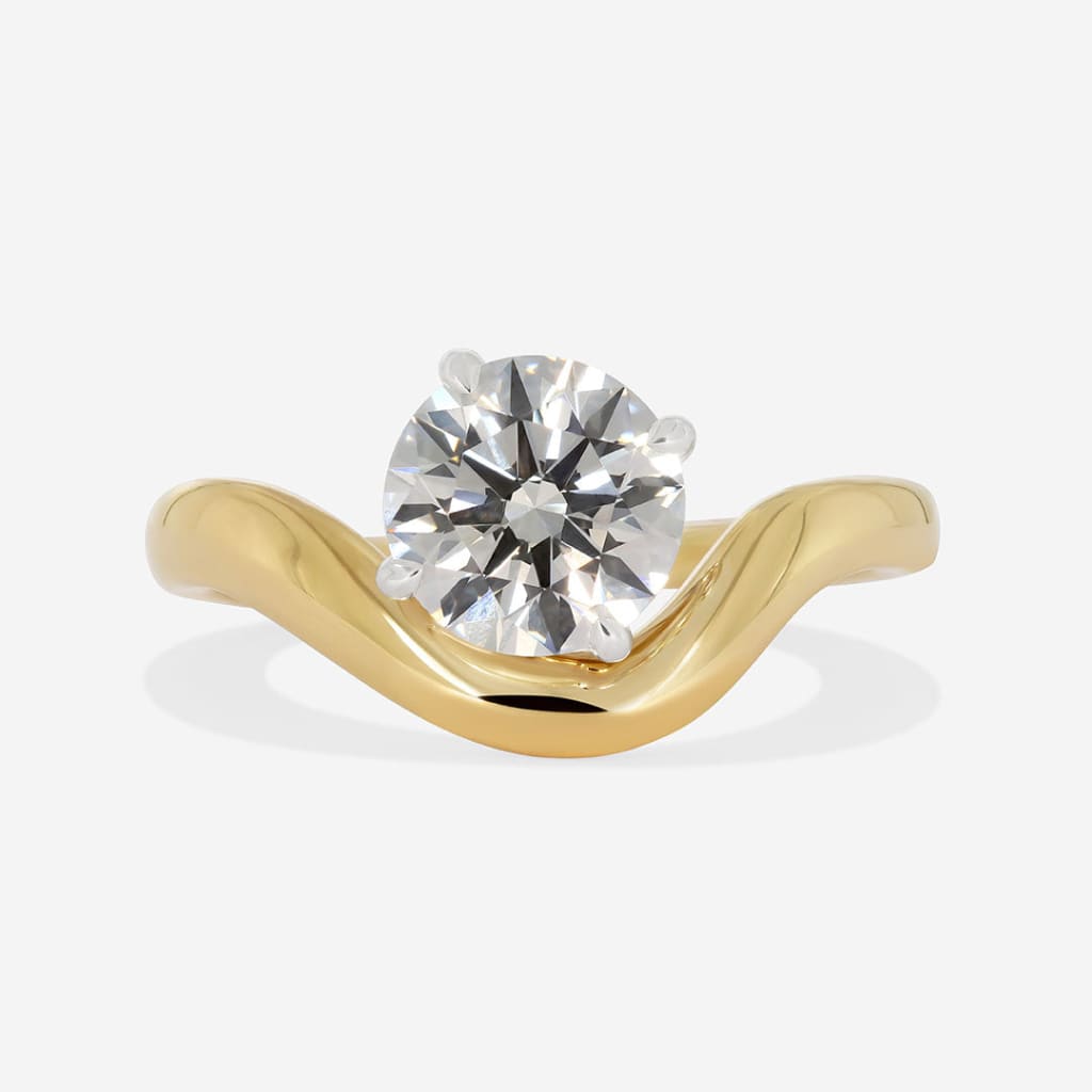 The Ivanna engagement ring is a stunning creation featuring a round brilliant-cut lab grown diamond set in 18ct yellow gold.